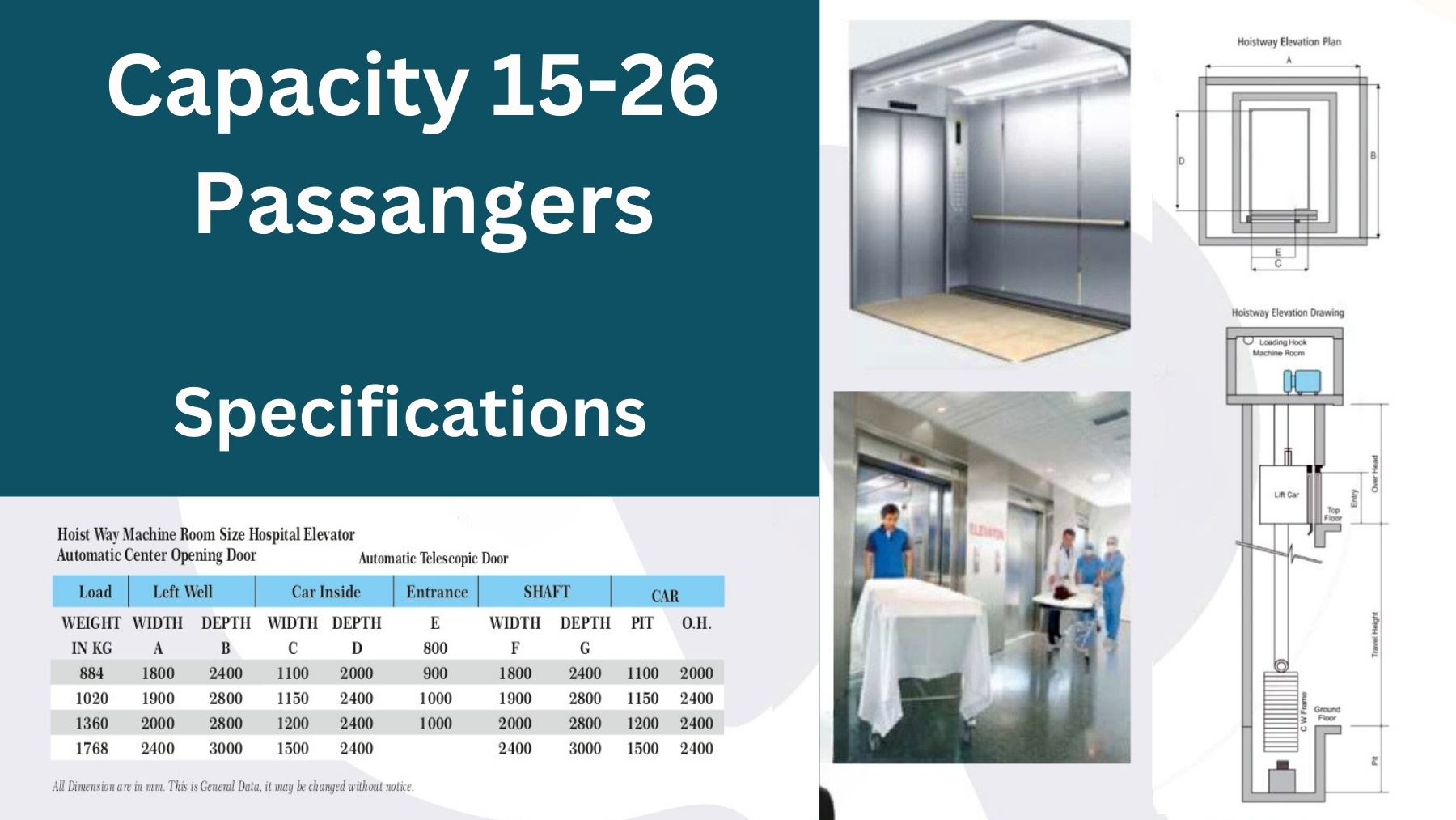 Our Hospital Elevator are designed to accommodate stretchers, wheelchairs, and accompanying personnel, efficiently moving them from one location to another. We offer separate passenger and bed elevators, with bed elevators typically reserved for patient use. With capacities ranging from 1,000 to 1,800 kilograms, our elevators operate at a slightly reduced speed compared to standard passenger lifts, enhancing patient comfort. Additionally, we provide customized options, including dust-proof technology, to meet the specific requirements of our clients.